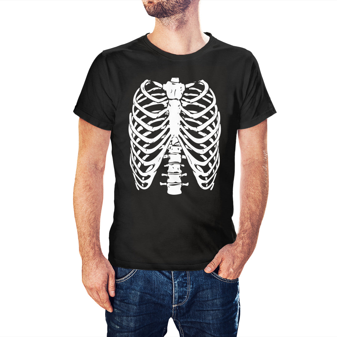 This Ribcage Halloween T-shirt is a single colour design, hand screen printed on a black 100% cotton regular fit T-Shirt, perfect for a Halloween costume.